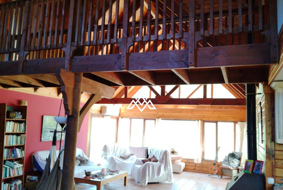 Nestled in a privileged natural setting, this stunning log-style wooden house combines rustic charm with modern comfort, offering a truly unique living experience surrounded by nature.
