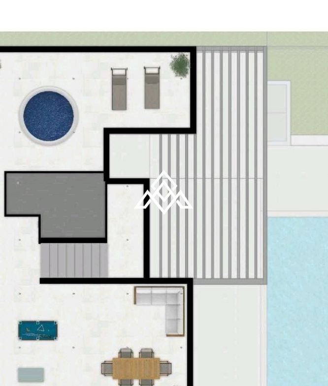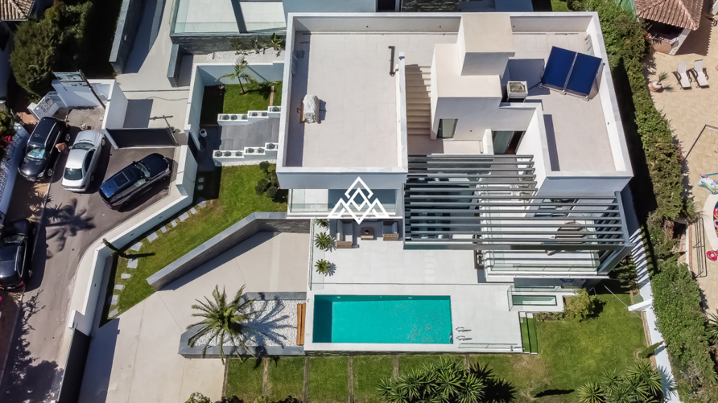 This exceptional newly built villa sits on a plot of over 700 m², with a built area of 396 m² distributed across three floors plus a rooftop terrace.