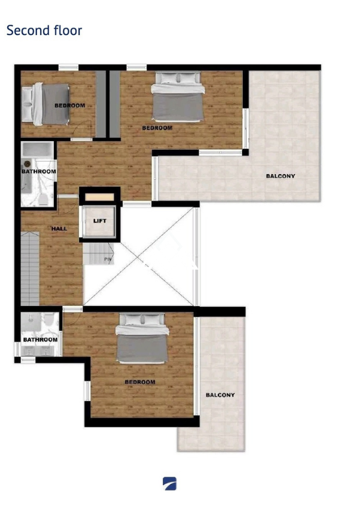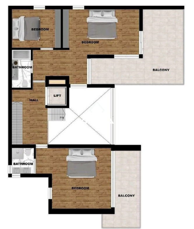 Second floor: 3 bedrooms. One is extra-large with an en-suite bathroom; the other two share a spacious bathroom.
