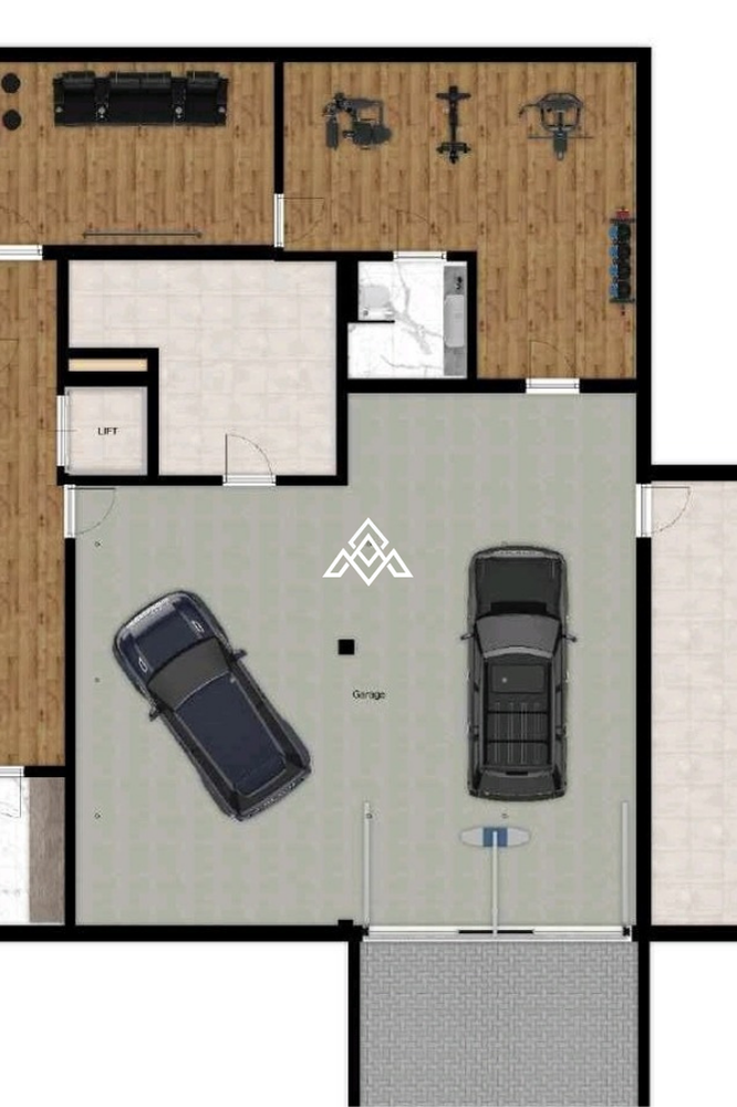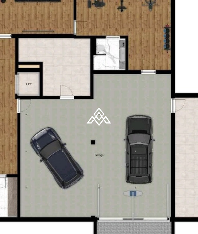 Ground floor: Large garage for 4 cars, storage room, machine room, bathroom, and 2 rooms with windows (ideal as office, library, or guest space).